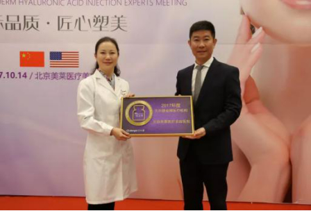 会上举行了隆重的金牌医疗机构授牌仪式。授予北京美莱医疗美容医院“2017年度艾尔建金牌医疗机构”。