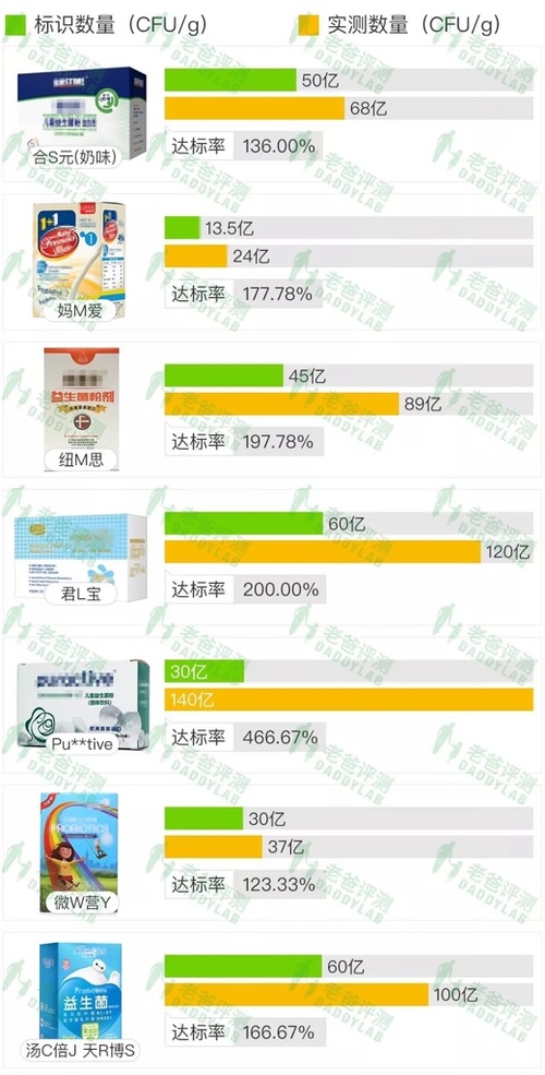 虽然大多数产品都没有保证,其在保质期内一定有多少活菌,但是检测后发现:这 7 款产品的益生菌实际数量都超过了其标称值,甚至远远高于标称值。